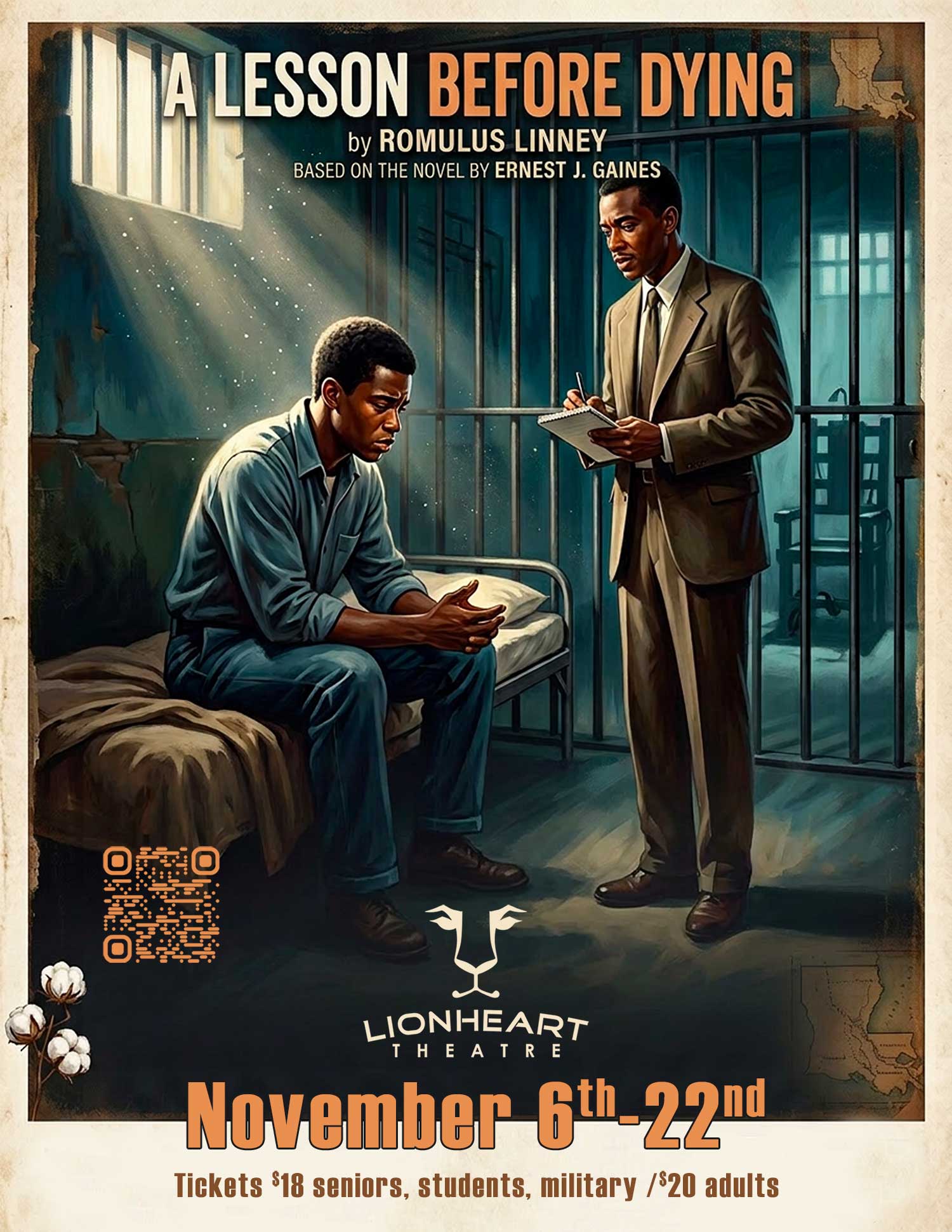 Jefferson, an innocent young man, is condemned to death in backwoods Louisiana in 1948. At the trial his lawyer, trying to save his life, called him no more a human being than a hog. In prison, he acts like one, insisting that he will be dragged like that hog to his death in the electric chair. His godmother asks a schoolteacher to teach him to die like a man. The teacher, Grant Wiggins, struggling to quit his poor parish school and leave the South, faces both Jefferson and himself as execution day arrives. Ernest J. Gaines’ celebrated novel makes an engrossing, moving, and finally devastating play for the stage.